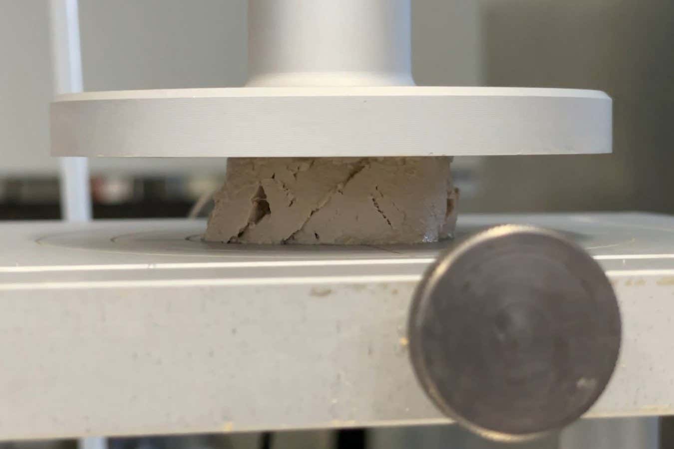 The researchers’ alternative foie gras undergoing a stress test in the lab
